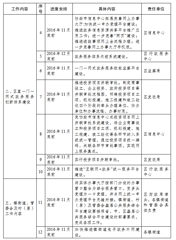 (区发改局负责,区信息中心协助,相关审批职能部门配合。完成时限:2016年11月底前。)