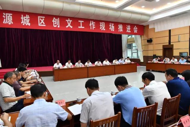 昨天,源城区召开“创文”工作现场推进会,为“创文”加温鼓劲,要求全区干部群众要做到全党动员,全民动手,全员出动,确保取得“创文”提名保卫战的胜利!